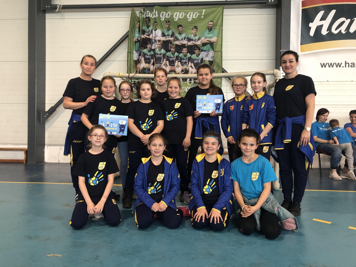 Halász Ági és Csicsay Zsófia edzők két csapattal szerepeltek a tornán. „A májusi hónap második felében csapatunk, az U10 B befejezte a tavaszi bajnokságot az alsó ágon, ahol sikeresen az előkelő harmadik helyen végeztünk. Szép eredmény, a lányok sokat fejlődtek, ügyesek voltak. Természetesen voltak gyengébb meccsnapok is, de a végére összeszedték magukat és eredményesek lettek. Az idényt viszont a hétvégén megrendezett playminihandball 2019-es rendezvényen fejeztük be, aminek Stompfa adott otthont. Csapatunk két részre lett osztva a tornán. A U10 B csapat a 13. helyen végzett, az U10 E csapatunk pedig a 19. helyet foglalta el. Első ízben vettünk részt ezen a versenyen, de mindenki számára sok tapasztalatot adott, és még több élményt. A lányok kissé fáradtan, de annál boldogabban tértek haza.”