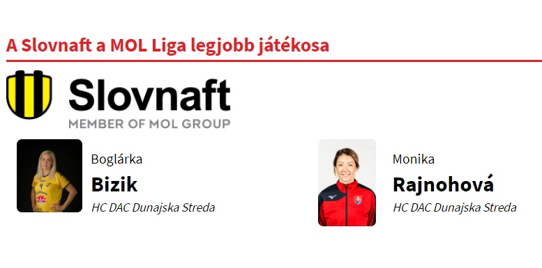 - Slovnaft MOL Liga legjobb játékosa: Bízik Boglárka, Monika Rajnohová